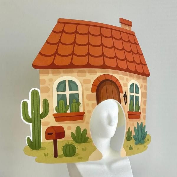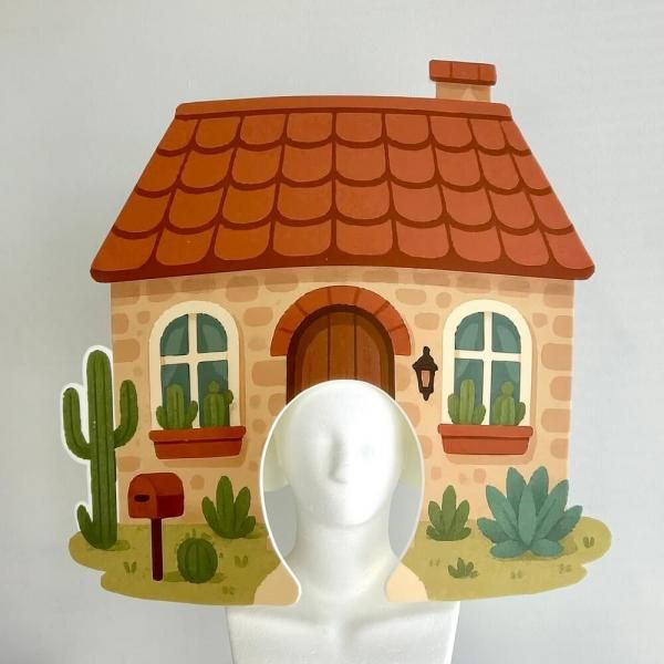 写真はオーダーメイドでお作りした、イベント用のお家(住宅・ハウス)かぶりものの制作例です。